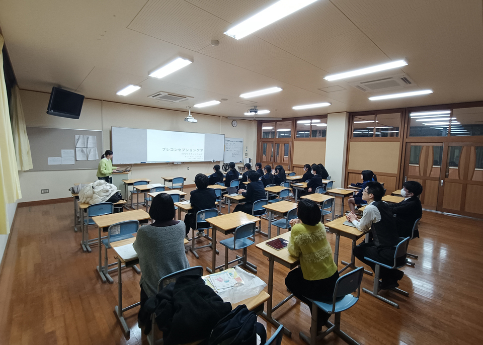 富山大学医学部公衆衛生学講座の研究室配属実習の一環として、片山学園中学校・高等学校の生徒を対象に、エコチル調査の概要と成果を紹介し、環境と健康の関係を説明しました。さらにプレコンセプションケアの視点から、月経困難症の将来リスクやHPVワクチンの重要性を解説し、男女で健康を支え合う意識づくりを促すグループワークを行いました。