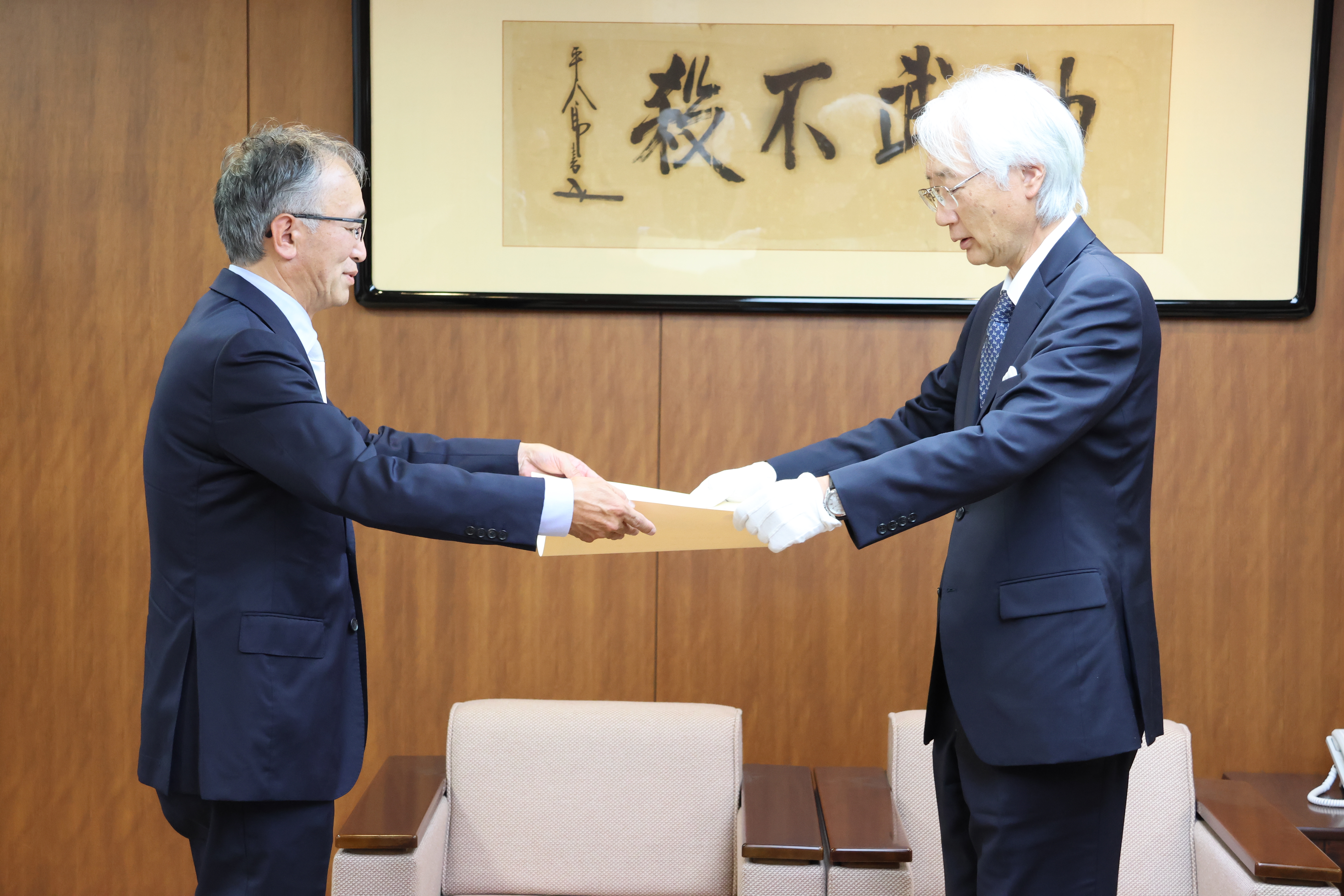 10月17日の伝達式にて学長から章記等が手渡されました。この度の受章は、令和6年8月に富山大学医学部基金に多額の寄附をされたことに対するものです。